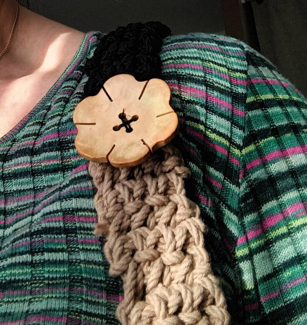 Bandoulière longueur 105cm, avec une fleur sur l'avant.