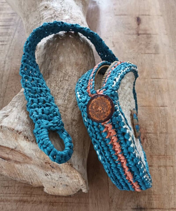 Mini sac "WOOD'IS" écru et pétrole ¤13,5cm