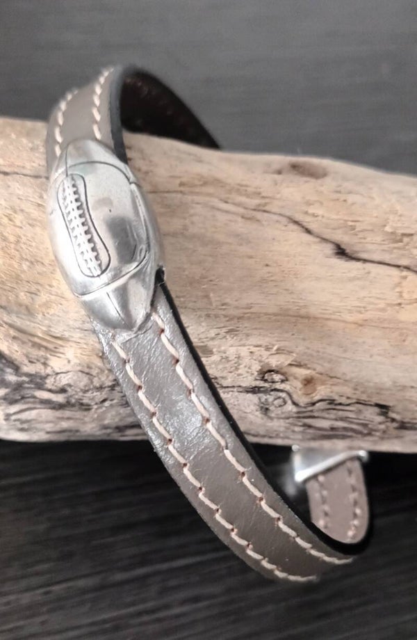 Bracelet cuir de veau taupe modèle Rugby