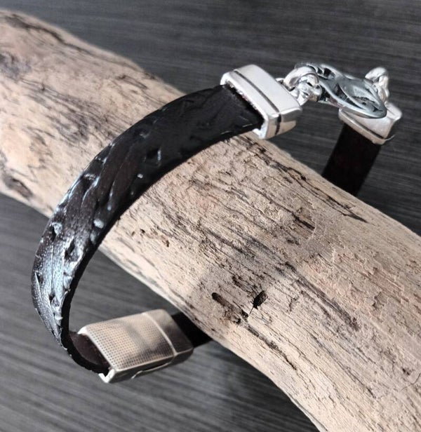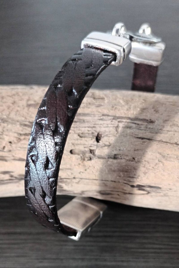 Bracelet cuir point couture marron foncé modèle Anneaux