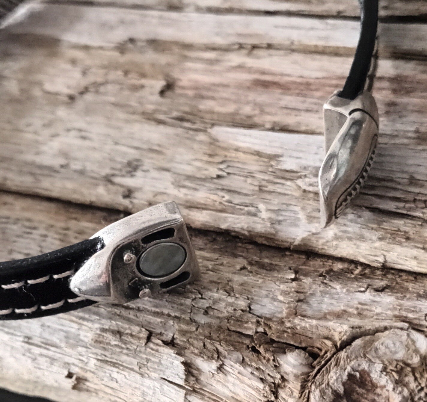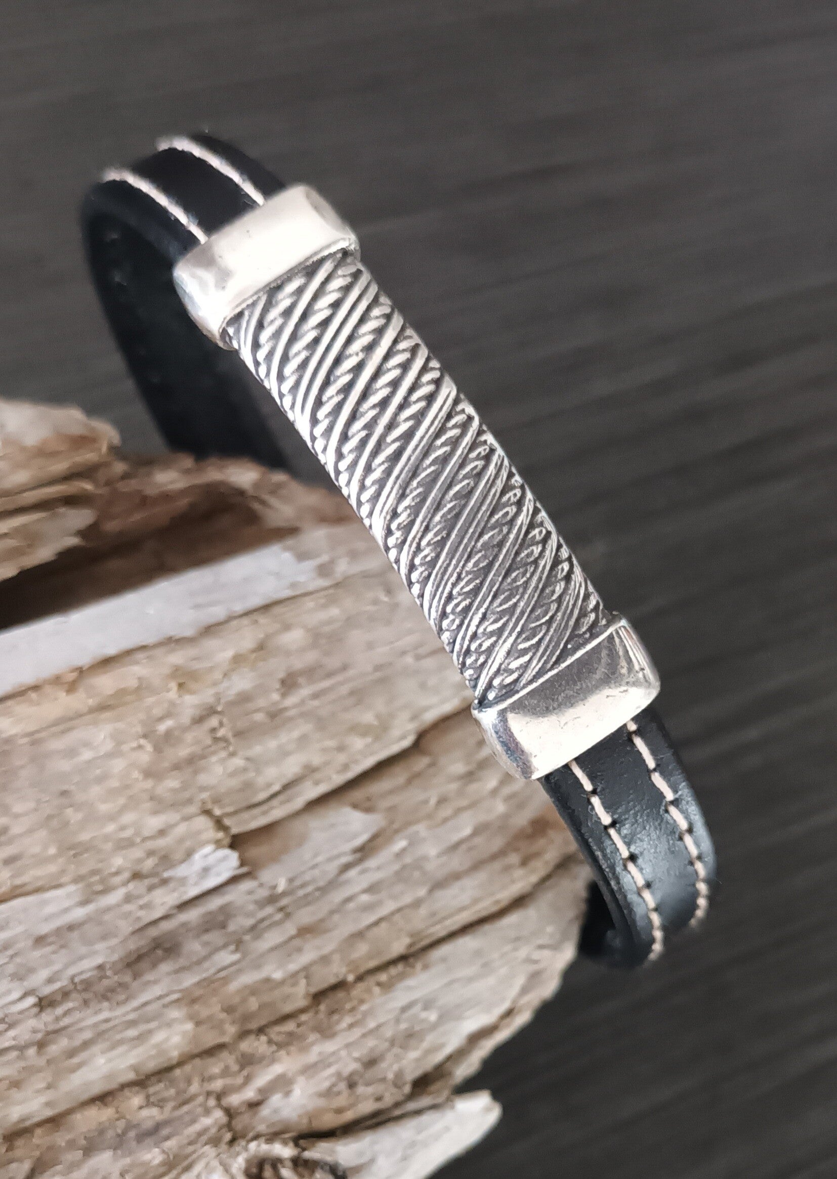 Bracelet cuir de veau noir modèle rugby