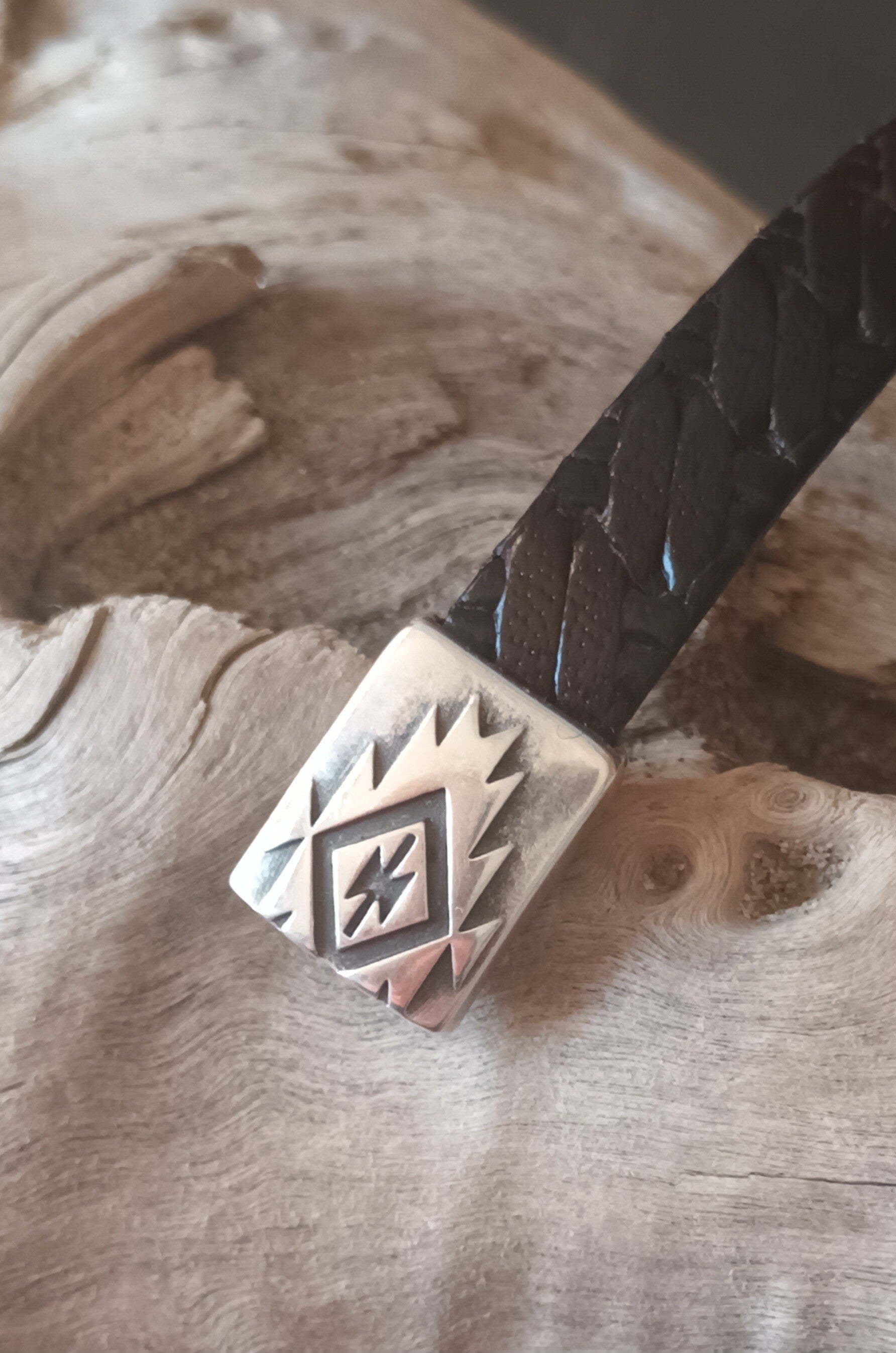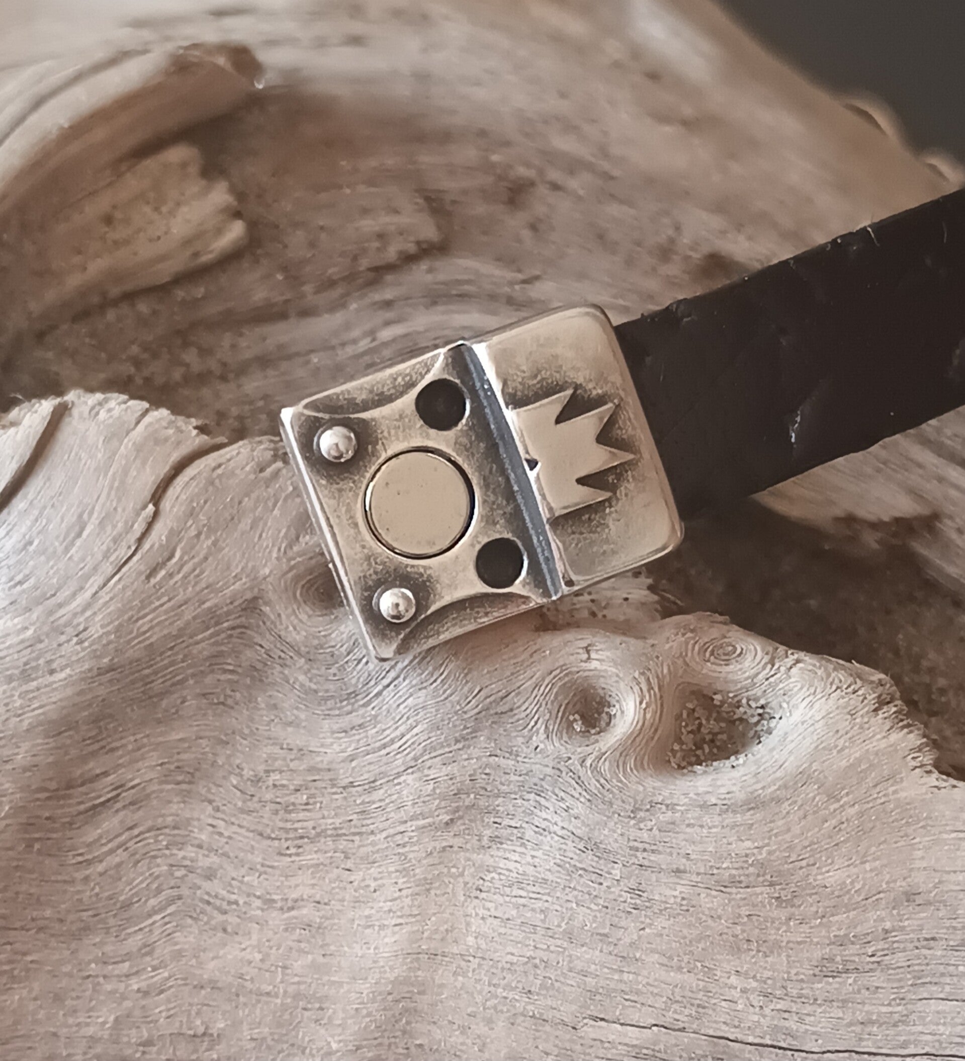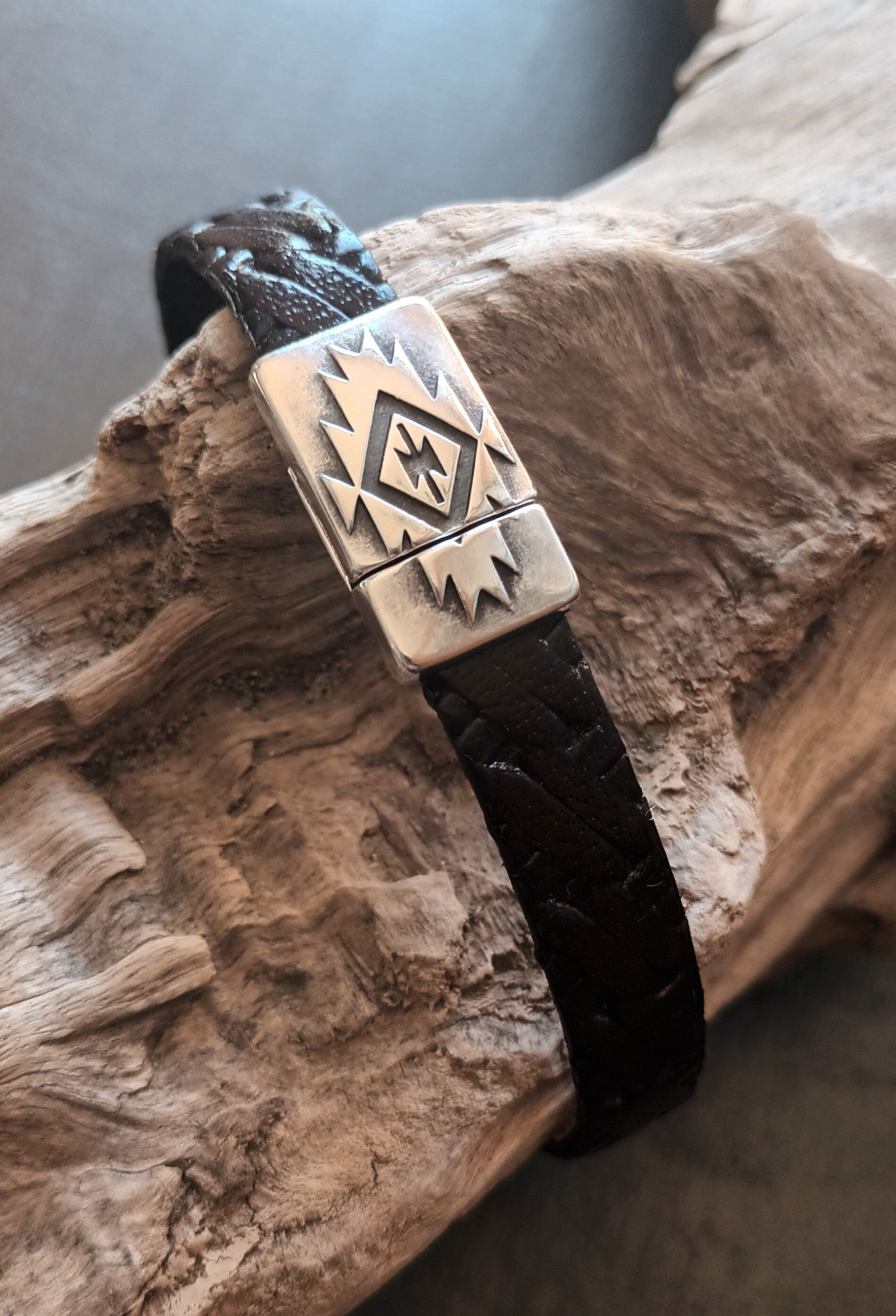 Bracelet cuir point couture marron foncé modèle Crâne de taureau