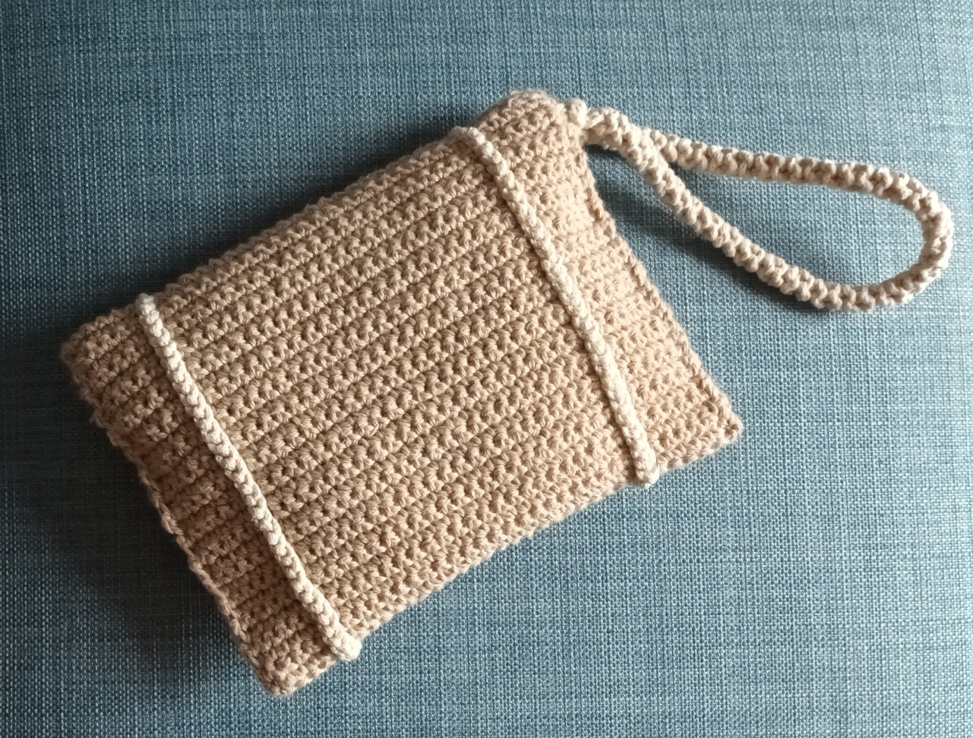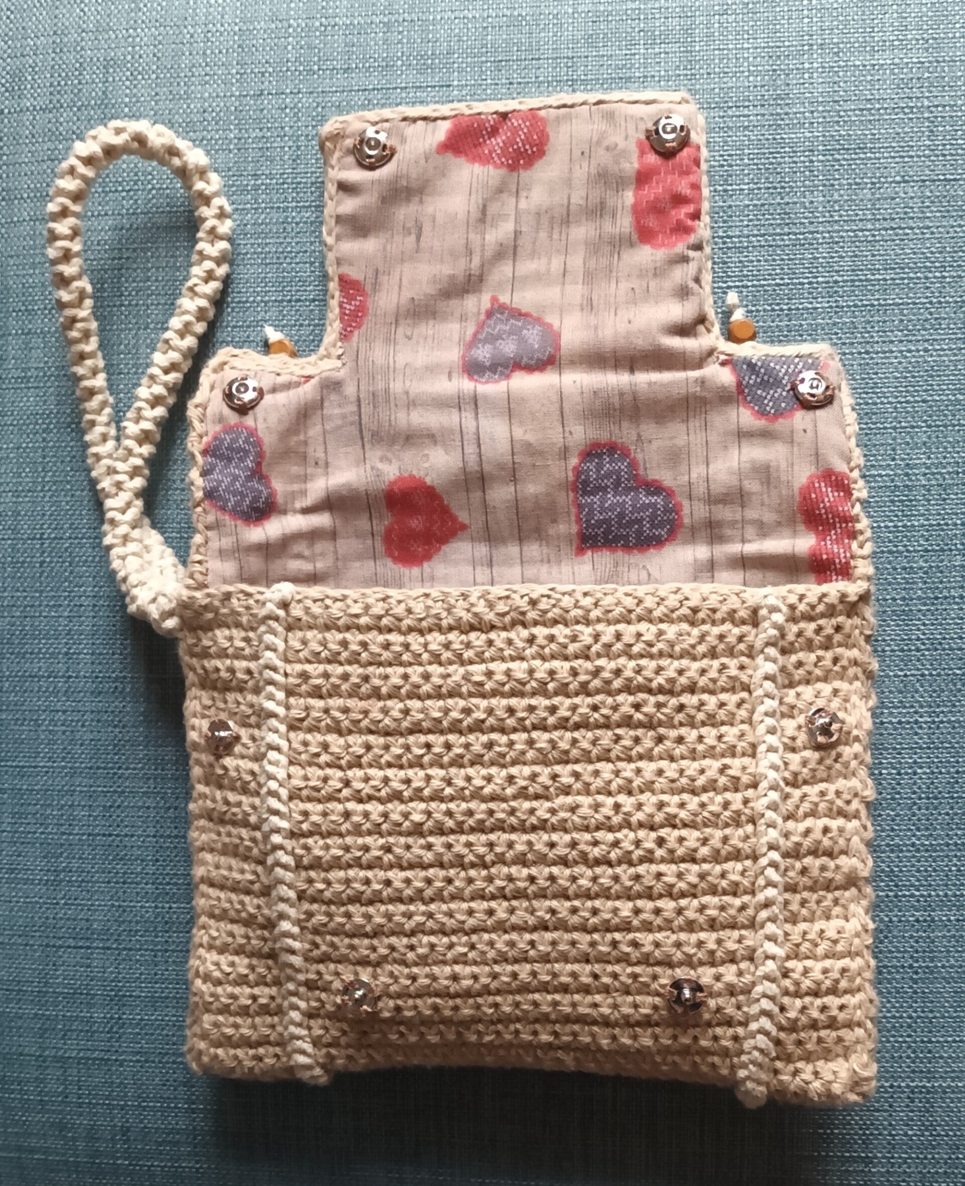 En coton naturel et coton recyclé, crochetée et cousue main.